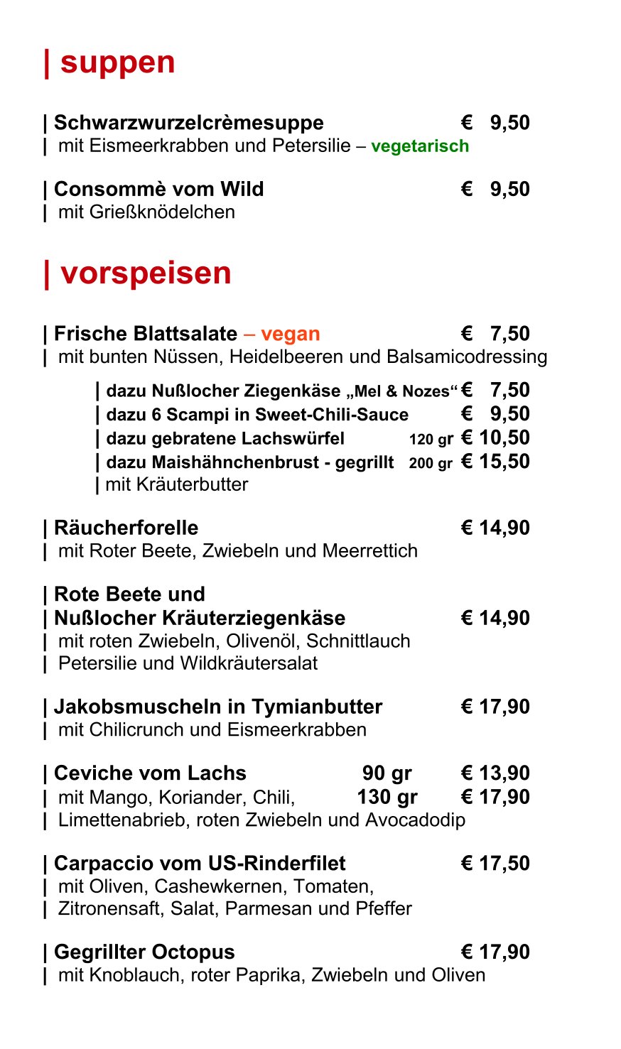 Unsere Frühlingsspeisenkarte reichen wir in den Monaten März, April und Mai.