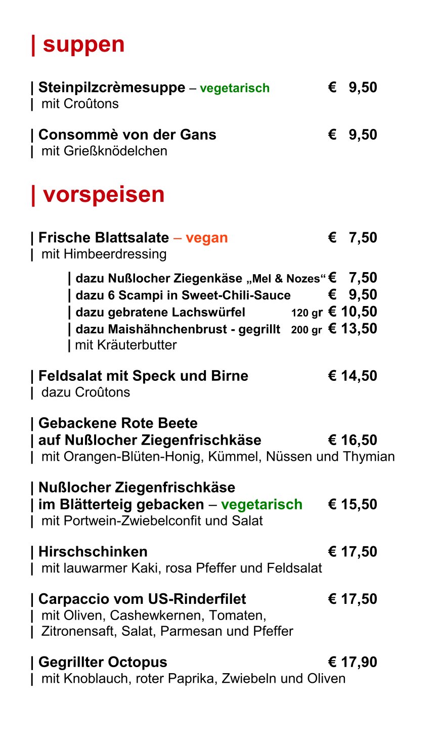 Unsere Frühlingsspeisenkarte reichen wir in den Monaten März, April und Mai.
